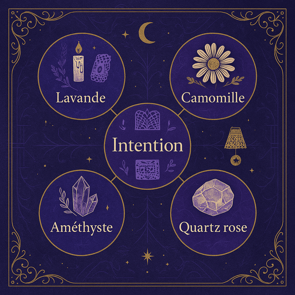 Autre exemple : la lavande, souvent utilisée pour ses vertus calmantes, est associée à la paix, à la purification, mais aussi à l’élément Air et à la planète Mercure. Tous ces éléments sont des correspondances liées à la lavande.