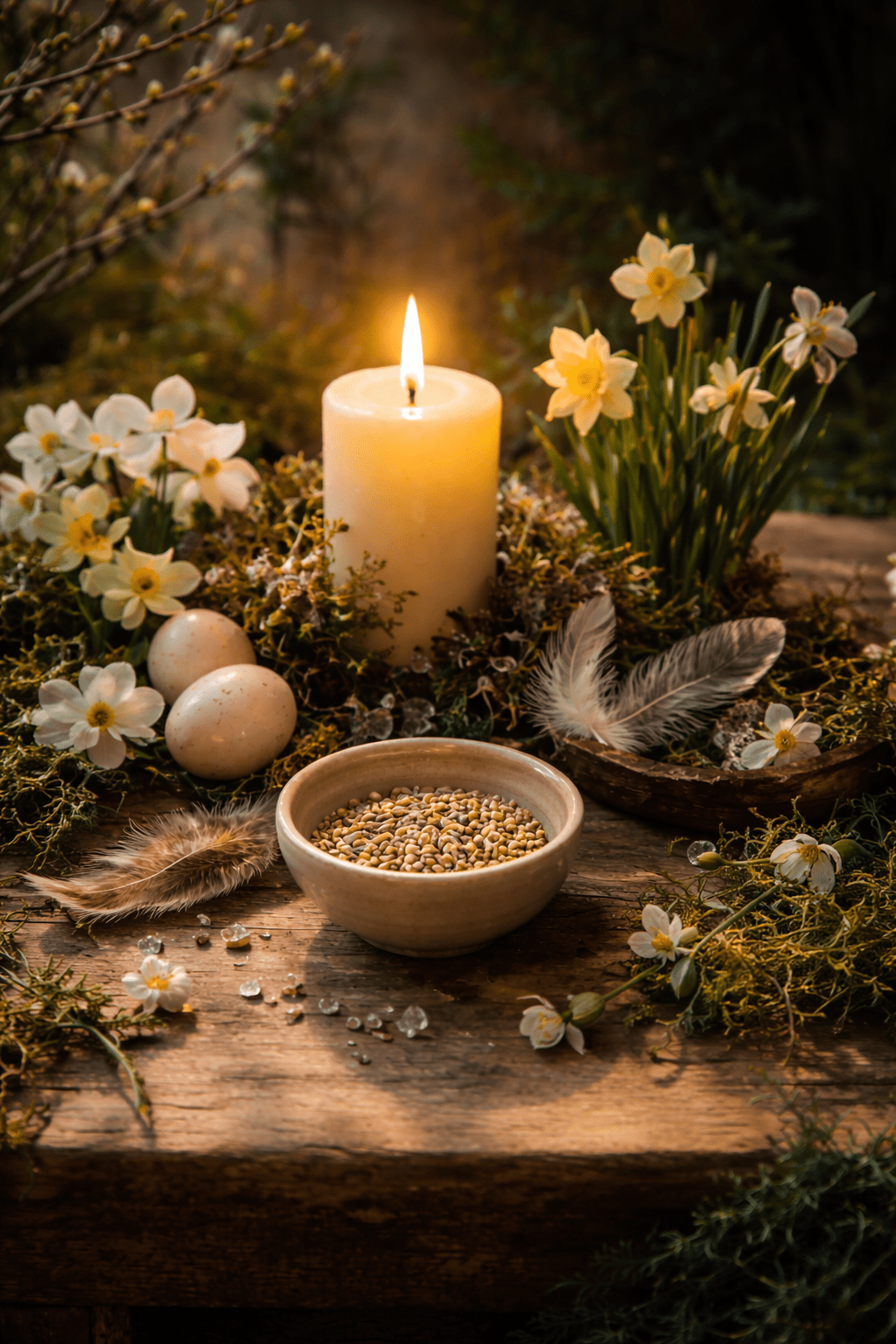 On peut aussi relier Ostara à la Terre, pour tout ce qui germe, s’enracine et prend forme, ainsi qu’à l’Air, pour le souffle nouveau, l’inspiration et le mouvement subtil qui accompagne le changement de saison. Les plantes du début du printemps, comme les jonquilles, les crocus ou d’autres premières floraisons, traduisent bien cette transition : quelque chose revient à la vie, doucement, mais de façon irréversible.